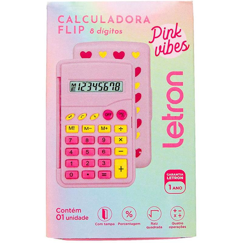 Calculadora de Bolso 8 Dígitos Rosa Flip Flor com Bateria - Leonora